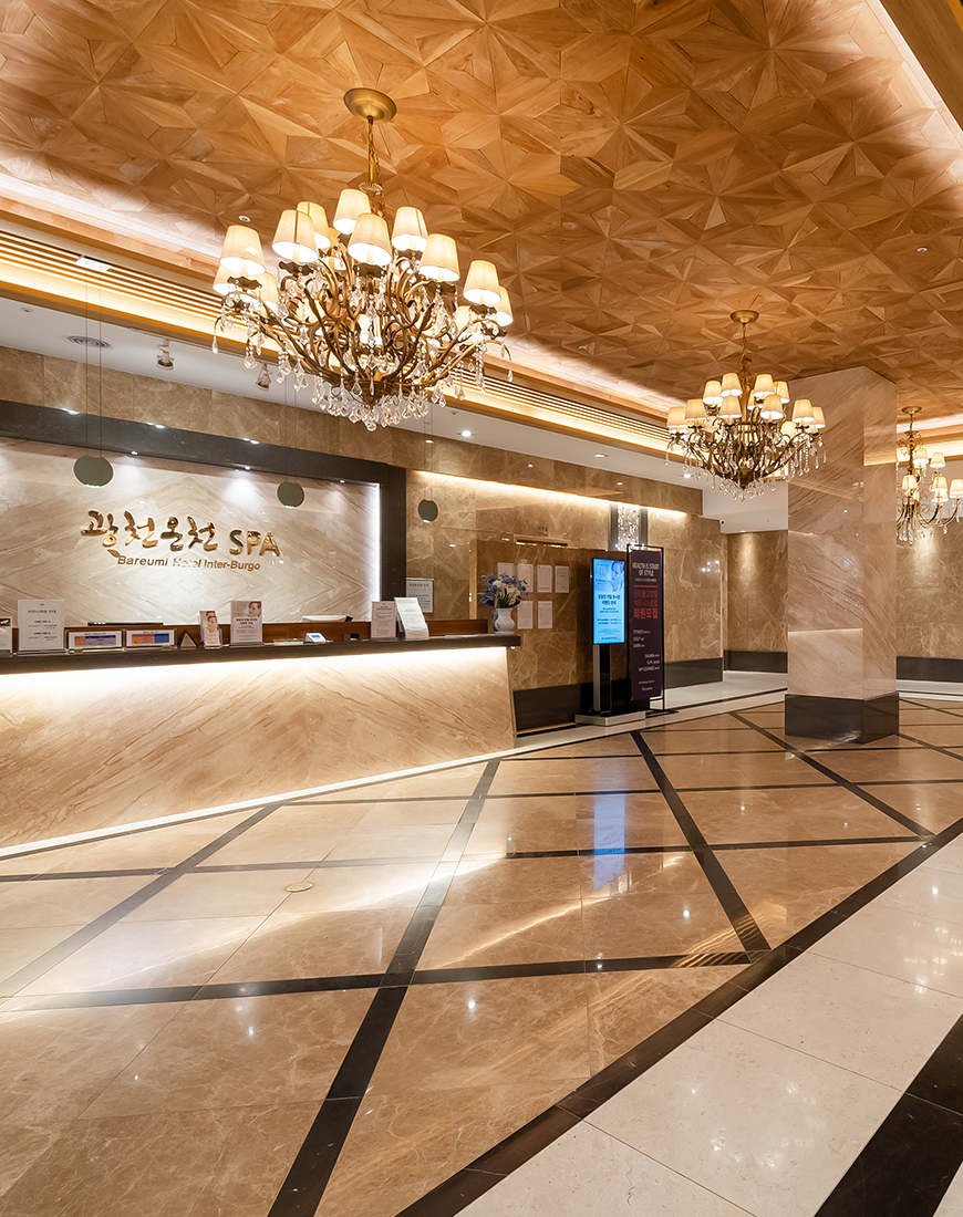주요시설로는 습식, 원적외선, 건식 사우나와 바데풀, 열탕, 온탕, 냉탕이 있습니다. 온탕과 바데풀에는 최신시설의 수중안마 및 브로아가 설치되어 있어 피로회복 근육이완에 효과적이며 신체리듬을 원활하게 해줍니다.
