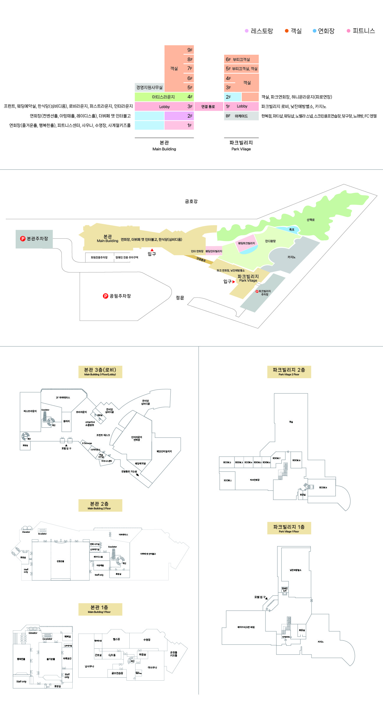 | B1 | Traditional Wedding Room (Wedding Park Village)) Arcade (Hanbok Store, Wedding Shop, Screen Golf Driving Range, Karaoke, Photo Studio) |